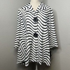 IC by Connie K Jacket Womens Medium Artsy Wavy White Black Big Button New $158. Condition is New with tags. Shipped with USPS Ground Advantage.