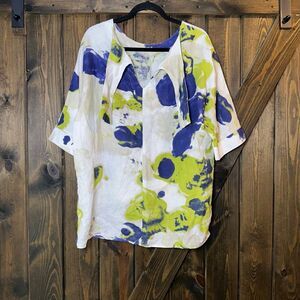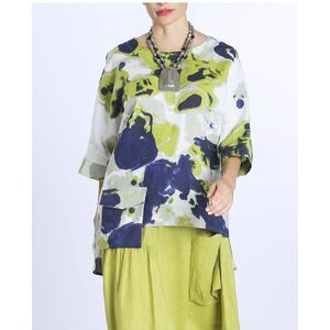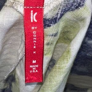 IC by Connie K Linen Blouse Green Print Lagenlook Art to Wear Sz M