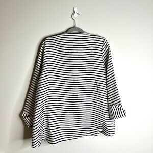 IC by Connie K Navy Blue Striped Top Coat Lagenlook Oversized One-Button Sz XL