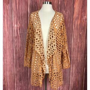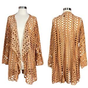 IC by Connie K Orange Open Weave Knit Topper Kimono Size XL