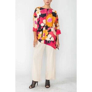 IC by Connie K Tunic 2XL Floral Asymmetric With Pockets Lagenlook Artsy