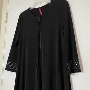 IC by Connie K black asymmetrical long sleeve half zip shift dress size small
