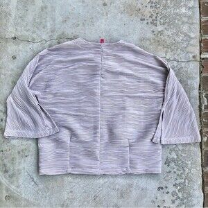 IC by Connie Shirt Jacket Top Metallic Silver Gray Full Zip Pleated Lagenlook