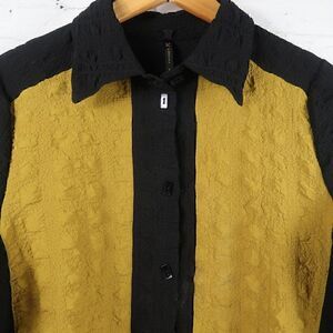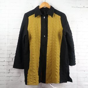 IC BY CONNIE K BLACK & YELLOW COLOR BLOCK BUTTON DOWN TUNIC TOP SIZE LARGE