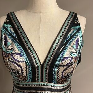Beautiful satin patterned paisley dress deep V front and back…. Great for special occasion events