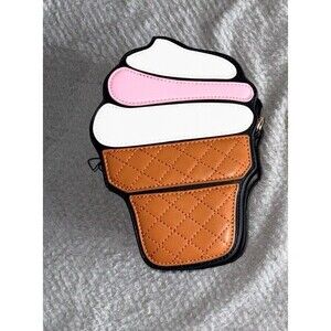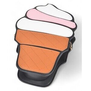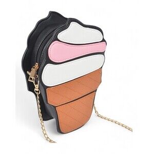 ICE CREAM CONE 3D PURSE CROSSBODY FAUX LEATHER QUALITY W/ GOLD tone CHAIN