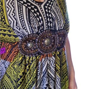 ICE Colorful Tribal Aztec Beaded Midi Dress Womens XS Sleeveless Vacation Boho