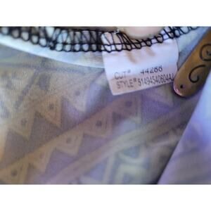 ICE women’s midi dress, size XS (runs large, see measurements). Vibrant Aztec and tribal geometric print in purple, orange, olive green, black, and white. Features ornate circular wooden and copper beadwork at the bodice, sleeveless v-neckline, and stretchy polyester-spandex bodycon fit. Slip-on closure, knee length. Perfect statement dress for vacation, cruise wear, beach outings, or summer festivals. MSRP $137. Excellent used condition, no flaws noted.