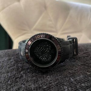 ICE Ice-Watch Black Love Swarovski Ladies Watch LOBKSS10. Ice Love watch collection. Black silicone band. Black dial. Heart Made with Swarovski crystals on dial. Miyota 2115 Movement. Battery needs to be replaced. Watch face measures approx. 1.5 inches across. Scratch resistant mineral crystal. Water resistant up to 70 meters.