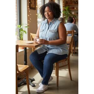I.C.E. Look NY Womens Sleeveless Embellished Denim Top - Size: Large