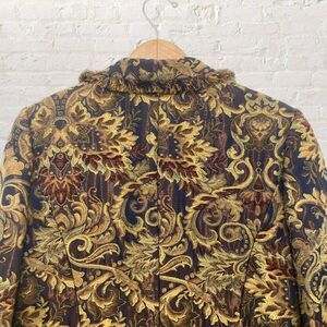 ICE Tapestry Brocade Jacket Size 12 Fringe Gold Navy Baroque Jeweled Buttons