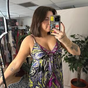 ICE V-Neck Paisley Satin Slip Mini Dress Purple Y2k