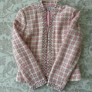 I.C.E. Pink Cream Plaid Tweed Jacket size 4