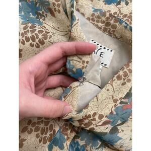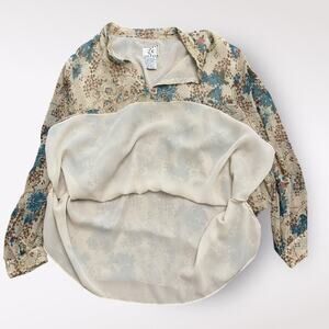 ICE Vintage Silk Beaded Blouse Womens Size 3X Beige Blue Boho Floral