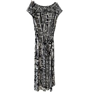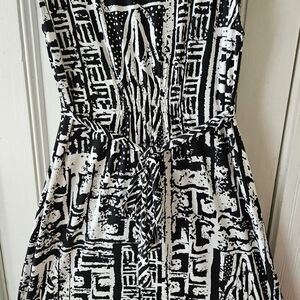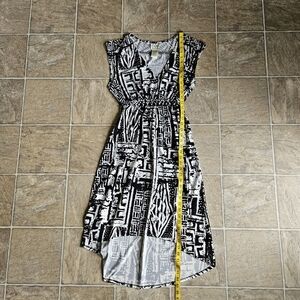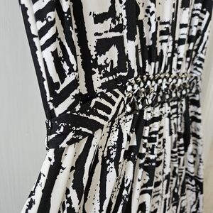 ICE Womens Hi-Low Beaded Waist Dress Size 14 Black White Abstract Short Sleeve