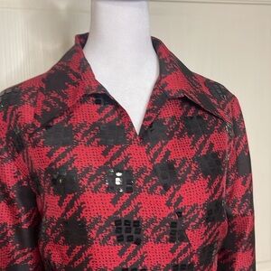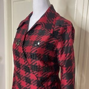 ICE Women’s Red Buffalo Plaid Silk Wrap Blazer Long Sleeve Size 12