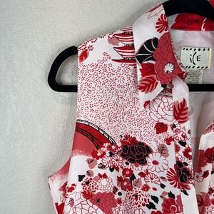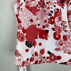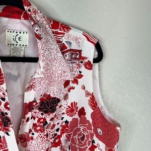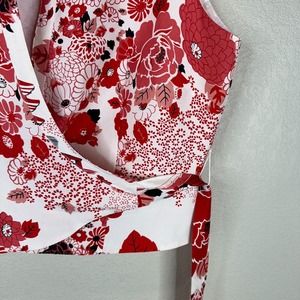 ICE Womens Wrap Top Size 12 Red/White Silk Floral Blouse Sleeveless Crop Preppy
