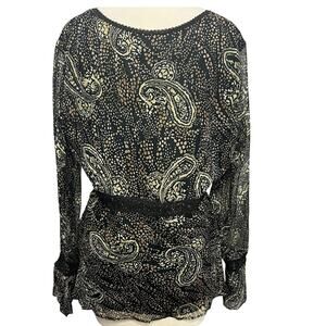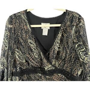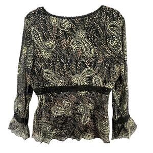 Vintage ICE Y2K Babydoll Top Womens L Black Silk Abstract Paisley Lined Boho Whimsygoth