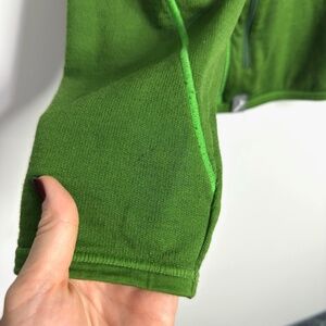 - Keywords: full zip, no hood, zippered pockets, mid-layer, skiing, hiking, green, merino wool
