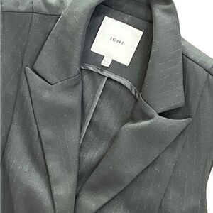 ICHI Black Pinstriped Vest Size Medium Classic Preppy Layer Metallic Stripes