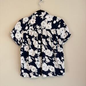 ICHI Button Up Shirt Women 36 US L Blue Floral Cotton Short Sleeve Office Preppy