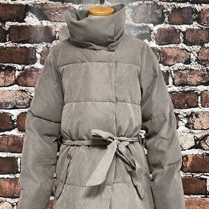 ICHI Puffer Trench Coat Square Tie Brown Size Medium M