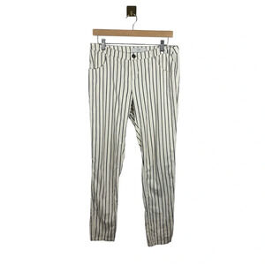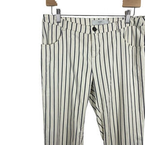 ICHI Women’s Striped Straight Leg Trousers in Ivory/Navy Size 8