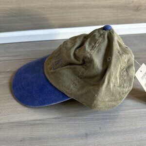 ICON Hat Cap By Adams One Size Leather Strap Cotton Beige Tan Blue Vintage NWT