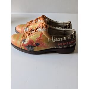 ICON Jolie-480 "Chemins de Fer" by artist Leonetto Cappiello Colorful Leather Golf Walking Shoes Women's 6.5