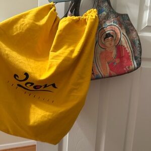 The ICON Shoulder Bag showcases a stunning blend of red and pink hues, creating an artistic masterpiece perfect for any occasion. Its slouchy hobo-style shape and decorative imagery make it a standout accessory, while the dark handles add a touch of elegance. Crafted with attention to detail, this bag is both stylish and functional, embodying the essence of modern fashion.