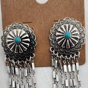 ICON Turquoise & Silver Concho Fringe Chandelier Earrings NWT