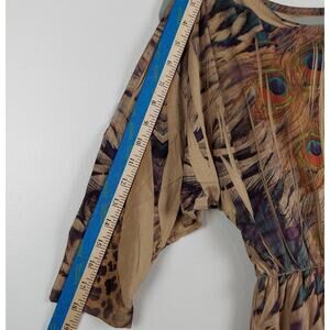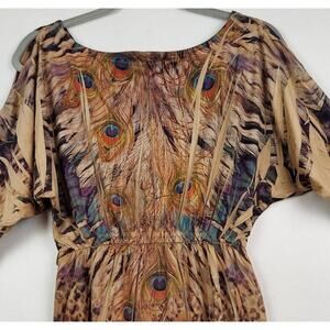 ICON Women's SMALL Peacock animal print soft tunic mini short dress with elastic waist