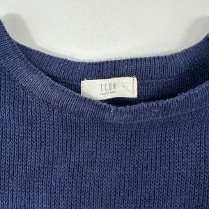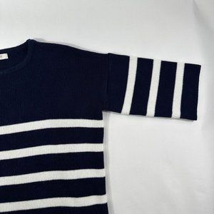 ICON Womens Striped Crew Neck Sweater One size Navy Knit Relaxed Fit Pullover