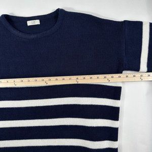 ICON Womens Striped Crew Neck Sweater One size Navy Knit Relaxed Fit Pullover Casual