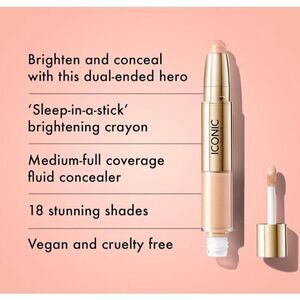 Get ready to add light, luminosity and flawless coverage in one with ICONIC’S Radiant Concealer and Brightening Duo Crayon in Warm Medium. These little beauties combine a luminous under-eye concealer together with a brightening crayon, giving you the perfect bright-eyed effect in an instant - leaving you with more time to snooze. The dual-ended concealer & crayon is the next generation for achieving that flawless skin finish. It lifts and illuminates while perfectly camouflaging imperfections. With a medium-full coverage concealer in one end & the genius “sleep in a stick” brightening crayon on the other, it offers complete coverage & a brightening wide-awake effect. Perfect for covering blemishes, dark circles and areas of pigmentation – while the brightening crayon helps to lift your complexion with its pearlescent light-reflecting pigment. Areas of discoloration are neutralized. MSRP $29.  You’re going to be obsessed! And it’s NWT! ♥️