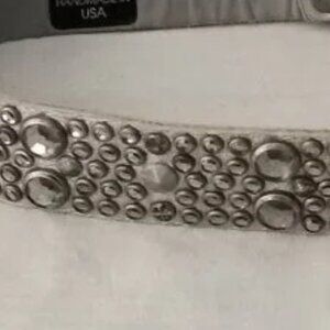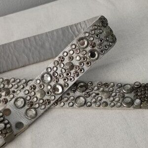 ❤️ICONIC MICHAEL MORRISON LOS ANGELES SWAROVSKI Studded Silver Leather Belt 28