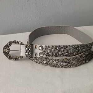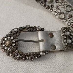 ❤️ICONIC MICHAEL MORRISON LOS ANGELES SWAROVSKI Studded Silver Leather Belt