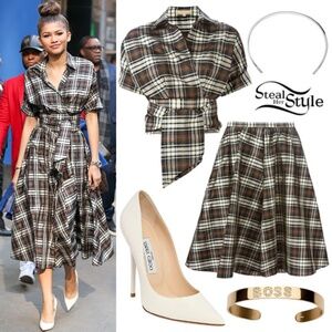 ICONIC Zendaya's $1550 Michael Kors Collection Runway Plaid Taffeta Silk Skirt 6