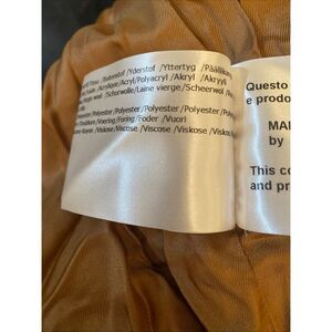This ICONS Cinzia Rocca coat is a stylish addition to any wardrobe. Made with a blend of wool the outer shell material ensures warmth and durability. The mid-length coat features a solid pattern with a collared neckline and button closure. The long sleeve coat is perfect for casual occasions and comes in a size 12 with a regular fit. The lighter camel color and button accents add a touch of elegance to the design. The coat is made in Italy and the lining material is 100% viscose.