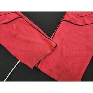Jersey has been worn and shows wear/paint on elbows, a couple snags, and a burn hole at bottom front