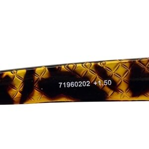 Stylish reading glasses with a unique tortoise shell pattern. These ICU Eyewear glasses feature a classic rectangular frame shape and brown tinted lenses. The arms showcase a distinctive textured design, adding a touch of sophistication. With a +1.50 magnification, these glasses are perfect for reading or close-up work. The frames are lightweight and comfortable for extended wear.