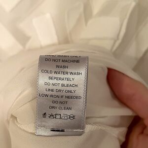 Please notice a little red spot on the front near the collar, like a pen mark. There is also a small discolored spot on the end of the sheer material. See photos.