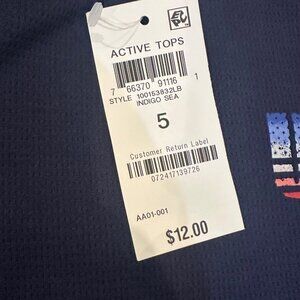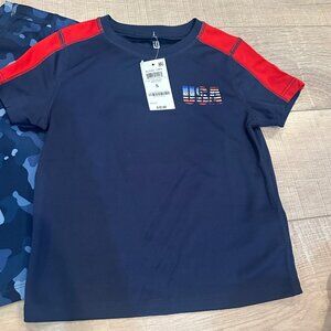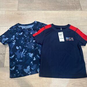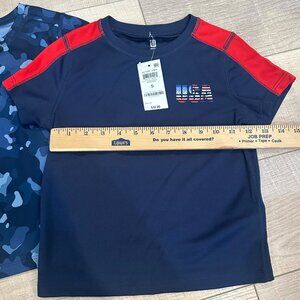 The product is a new blue camo size 5 T-shirt from the brand Ideology specifically designed for boys. The shirt features short sleeves, a crew neck neckline, and is ideal for young boys who love to wear stylish clothing. The blue camo design adds a trendy touch to the classic boy-style shirt, making it a versatile and attractive addition to any boy's wardrobe.