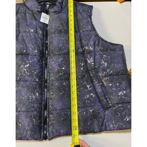 ID Ideology Womens Puffer Vest 3X Deep Black, purple with Speckle foil design