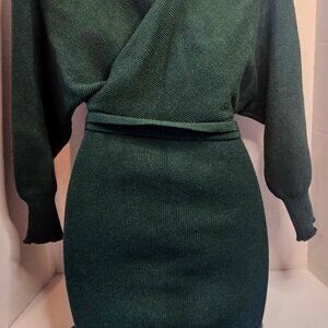 IDEM DITTO OVERSIZED 3/4 DOLMAN SLEEVE FOREST GREEN SWEATER DRESS SZ SM 1CALLOUT