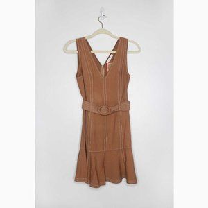 NWT Idem Ditto Camel Stitch detailed ruffle hem belted mini dress