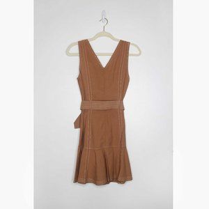 IDEM DITTO Ruffle Hem Belted Mini Dress in Camel. Size Small