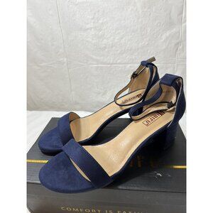IDIFU Cookie LO Block Heels Chunky Sandals Ankle Strap Blue Suede 7.5