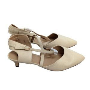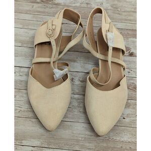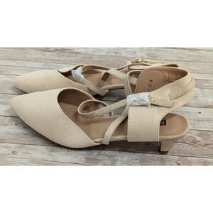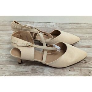 IDIFU DFMG617 Womens Size 9 Beige Suede Pointed Toe Ankle Strap Kitten Pump Heel
