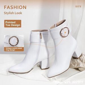 IDIFU Dressy Chunky Heel Ankle Boots Short Booties White 8